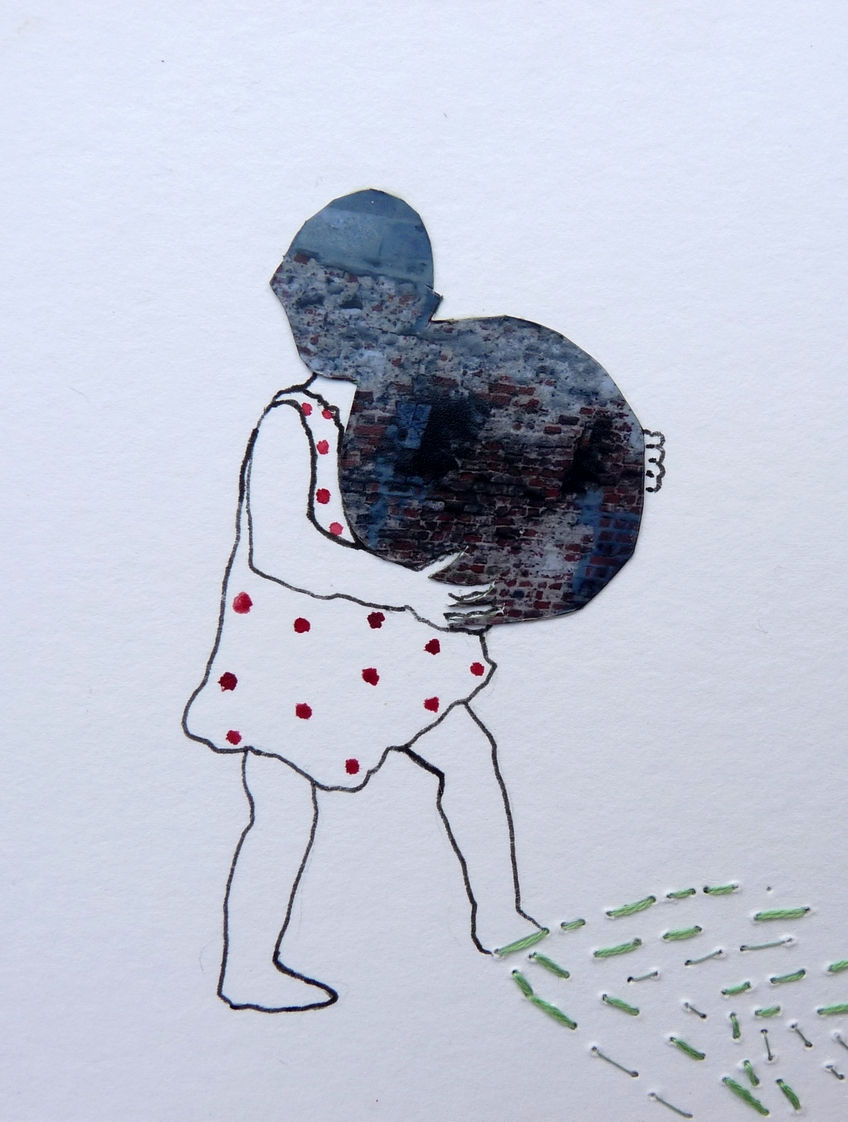 A partir d'une photographie anonyme, j’isole certains éléments (importance de l’inconscience à ce moment-là) et je reforme une image : l’important est alors la multiplicité des versions possibles à partir de cet unique instant…